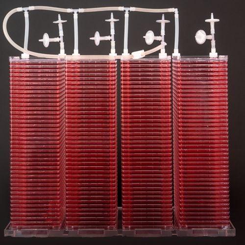 DHS 多层细胞培养系统专为大规模细胞培养设计的培养器皿,采用第三代贴壁表面处理技术,和传统细胞培养方法及其他品牌同类产品相比,其细胞贴壁性更好,培养面积更大,不仅更加节省空间,操作更加简单方便,还能获得更好的培养效果。同时,鼎吴源还配套开发了一系列仪器设备,为大规模细胞培养全程中的培养、振荡消化到冻融破碎等步骤提供了全套的解决方案。